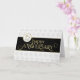 This is an Employee 15th Anniversary card in black, white, grey and gold. The design features the centrally placed text: Happy Anniversary, written in a beautifully flowing font with attractive flourishes and a digitally created gold embossed effect overlay. The text is on a black text box with a digitally created gold foil effect outline.
