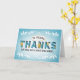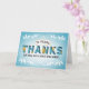 This is an attractive 15th employee anniversary card featuring the text 'THANKS' with a debossed effect. There are some stars, overlaid with a gold sparkle effect, that look as though they are partly inside and partly outside the text. Above the word 'THANKS' is a curved text box in which is written 15 YEARS. Underneath the word 'THANKS' is the text 'for being such a great team member'. There are white decorative borders at the top and bottom of the design. The main colours of the design are blue and white and there is a very light stripes pattern in the background