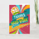 This is a fun, brightly colored employee 20th anniversary card using the text: 'Thanks for all your hard work' as a main part of the design. There's a multi-pointed star, top left, on which is the number 20. The banner and other various shapes used within the design have created a dynamic and celebratory feel to the card.