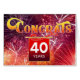 This is a colourful Employee Anniversary 40 Years card featuring the text 'CONGRATS' which is written in a fun font with some swirly elements and overlaid with a yellow to deep red gradient with a touch of digitally created sparkly stars and dots detail. The text is set against an exciting celebratory spray of fireworks background with a matching colour palette to the text. Underneath CONGRATS is a banner on which is written '40 YEARS'.