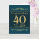 This is an employee 40th anniversary card. The design is formal and elegant and set against a jade coloured background with gold foil effect text and decorative elements.