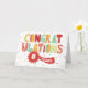 This is a fun and colourful Eight Years Business Employee Anniversary card featuring the word 'CONGRATULATIONS' which is in a bold, hand written effect, capital letters font in a celebratory combination of colours. The colours are red, peach, orange, pale green and pale yellow with some decorative gold sparkle effect elements. The word is written horizontally across the design with 'CONGRAT' above 'ULATIONS'.