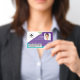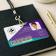 This modern, colourful identification design features a four-colour geometric pattern with abstract shapes in purple, teal, and green for a fresh, professional look. The front layout neatly displays employee information, including photo ID, logo, name, ID number, and an optional barcode for easy scanning. The reverse side continues the coordinating geometric design and includes space for a business address and logo. Designed to be versatile and professional, this identification style is ideal for hospitals, clinics, medical offices, healthcare practices, and a wide range of medical and healthcare businesses.