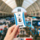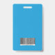Employee ID badge in modern, teal design. All elements are changeable or removable. Elements include: company logo, company name, employee photo, employee name, employee title, security barcode scan. Available in vertical orientation. Slot at top for lanyard. MATCHING BUSINESS CARDS also available in this store.