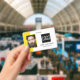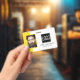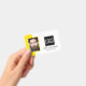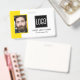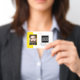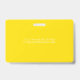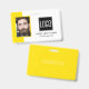 Smart business office ID badge featuring a yellow and white background, a photo of the employee, your company logo, name and profession.