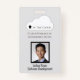 Vertical Employee ID badge with light grey background and framed employee photo.All elements are changeable or removable. Front of Badge Elements include: company logo, company tagline,employee photo, employee name, employee department. Back of design has company info, "if found" instructions to return to company, and security barcode, all customisable. Also available in horizontal orientation. Slot at top for lanyard. All of these elements can be changed or deleted.