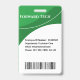 Vertical Employee ID badge with two shades of green background. All elements are changeable or removable. Front of Badge Elements include: company name, employee photo, employee name, employee department. Back of design has security barcode scan. Available in horizontal orientation. Slot at top for lanyard. Back of Badge Elements include: company name, employee ID number, employee department, employee email, employee phone and extention and security bar code. All of these elements can be changed or deleted.