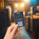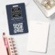 A modern minimalist personalised business badge with business logo and QR code. Personalise with your logo, QR code and details to create your own unique elegant blue and white business badge. Customise even further with a custom colour background or font.