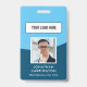 Minimal and modern style professional company/business employee photo ID badge with a blue colour theme. Customise with your company's logo and employee's photo, change the background colour or leave as shown here. Add your URL for the QR Code on the back or remove if not needed. There is a text box to add further information on the back. Please browse other employee/business badge designs in the Employee ID Custom Photo Logo Badge Collection.