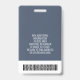 Soft, denim blue-grey background with an area to add the employee photo. A basic business design that highlights your office logos and employee name. You can add a scan bar code on the back. You can also change the colour of the background.