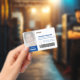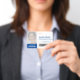 Landscape dark navy blue essential workers identity ID badge personalize with your employee's photo, name, job role, company logo, company name employee number and a barcode for entry into restricted areas. Lost or other important information on the reverse.