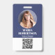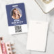 Employee Name Badge Minimalist Photo QR Code Blue ID Badge