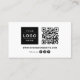 Modern personalised business card features a business logo image, custom QR code, and website on the front with social media follow icons. The back of the card includes the business name, employee, job title, and contact information. Black and white design can be completely customised to suit your style. Choose the customisation option to change the colours, font styles, and more!