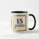 Faux gold and aged background employee anniversary, longevity or milestone recognition and appreciation coffee mug award, to celebrate and reward individual or group achievements, personalized with the number of years, employee name, message, and your logo, perfect additions to your work engagement efforts.
