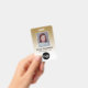 Gold - A basic custom business design that highlights your office logos and employee name. You can add a scan bar code on the front and back.