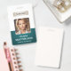 A modern and elegant corporate ID badge designed in a deep green colour palette. Easily customisable with an employee photo, name, job title, company logo, and other business details. The layout features clean typography for a professional and clear appearance, ensuring easy identification. This ID badge is available with options for a lanyard, metal clip, or retractable holder. No minimum order required.