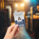 Employee Photo ID Barcode Logo Navy Silver Curve Badge