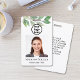 This employee's Company ID security badge features a photograph and logo template on a botanical watercolor greenery background.