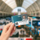 Employee Photo ID logo bar code modern linen blue Badge