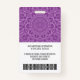 Purple Orchid and White Mandala Pattern - A modern business design that highlights your office logos and employee name. This trendy office design also includes a badge ID number, expiration date and nurse or or other title. BACK: You can add a scan bar code on the back and a place to add information if the badge is lost. You can also change the colour of the background. Click on the customise button and choose a background colour for the front and back.