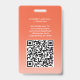 Represent your business in style by supplying staff with with modern and professional identification photo badges. The Logo, photo, QR code and all wording on this template are all simple to customise. To make your own QR code using the generator, simply type the website URL into the template. The design also features an orange ombre gradient background with unique curved arcs, your company logo, one square picture, and employee name and title. It's suitable as a promotional marketing tool or as an access pass for an event, such as a conference, concert, festival, or vip party. It can provide organisation and security for company staff, while presenting the corporate branding with an elegant and classic appearance.