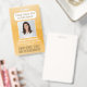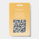 Represent your business in style by supplying staff with with modern and professional identification photo badges. The Logo, photo, QR code and all wording on this template are all simple to customise. To make your own QR code using the generator, simply type the website URL into the template. The design also features a golden yellow ombre gradient background with unique curved arcs, your company logo, one square picture, and employee name and title. It's suitable as a promotional marketing tool or as an access pass for an event, such as a conference, concert, festival, or vip party. It can provide organisation and security for company staff, while presenting the corporate branding with an elegant and classic appearance.