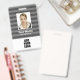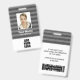 Personalise this grey striped employee ID badge with name, photo and logo. On the back you can add useful information like address, website, ID number and barcode.