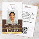 Create a professional appearance with this personalised staff identification badge. A simple and stylish template with your ID photo, name, job title, employee number, company logo, and scannable QR code. All the text can be customised or deleted to suit your business needs. This elegant design would suit many different workplaces and professions, including retail salespersons, restaurant and foodservice employees, office staff, small businesses, conference name tags and more! Printed colours: dark nut brown and white with a gold gradient.