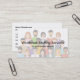 Employment agency modern two side business cards with a graphic of job applicants on the front and your contact details on the back. Designed for a business that recruits employees for companies for their staffing needs.