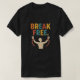 A powerful and motivational illustration featuring the bold, multicolored text "BREAK FREE." at the top. Below the text is a stylised figure of a person breaking out of red chains, symbolising liberation, empowerment, and overcoming limitations. The vibrant colour palette and textured design give it a dynamic, inspiring look — perfect for t-shirt prints, posters, or social campaigns focused on freedom, mental strength, or personal growth.