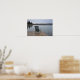 Empty chair on lake deck poster