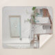 EMPTY DESK NEAR CURTAIN SHERPA BLANKET