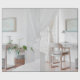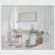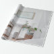 EMPTY DESK NEAR CURTAIN WRAPPING PAPER