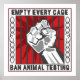 A fist pounds the cage bars in a message to ban animal testing, empty every cage! Images © Graphics Factory.com