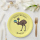 This funny emu has green eggs! Drawn in happy cartoon style.