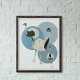 Add a wild touch to your wall with this poster. Modern, realistic style illustrations of emus are set against a background of grey-blue circles.