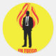 En Fuego stickers. A minimalist vector design featuring a man in a black business suit surrounded by flames. Interpret the allegory however you want. A good gift for fans of absurdism, vector art minimalism, and businessmen on fire.
