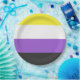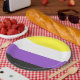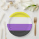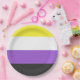 This design features the non-binary pride flag, which represents people who identify as non-binary (also spelled nonbinary) or genderqueer, involving a spectrum of gender identities that are not exclusively masculine or feminine, but are outside the gender binary. Non-binary identities can fall under the transgender umbrella, since many non-binary people identify with a gender that is different from their biology. An informal term for non-binary is "enby", which comes from the abbreviation NB. Non-binary people may identify as having two or more genders, having no gender, moving between genders, having a fluctuating gender identity and being third gender or other-gendered.
