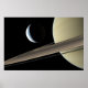Digital artwork depicting Saturn and one of it's moons, Enceladus