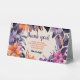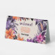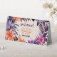 Welcome guests with a touch of autumn magic. This watercolor table tent sign features a wreath of pink, orange, and purple lilies with soft foliage on a pastel yellow background. The editable text fields allow you to display greetings, instructions, or seating arrangements, and the image slot lets you add your small business logo. A versatile piece for corporate events, pop-ups, or client-facing occasions—designed to feel both professional and enchanted.