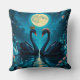 Enchanted Black Swan Under Moonlight Botanical Cushion