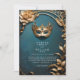 Evoke the magic of a masquerade ball with this exquisite wedding invitation. A rich blue background adorned with intricate gold simulated ornamental decor and 3D foliage and flowers creates a luxurious and enchanting atmosphere. The golden masquerade mask takes centre stage, adding an element of mystery and glamour to your special day.