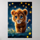 Enchanted blue-eyed lion cub in firefly glow poster