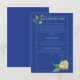 Complete your wedding invitation suite with this Enchanted Blue Lemon Blossom Wedding Enclosure Card. Designed with a rich blue background, hand‑illustrated lemons, soft greenery, and delicate white blossoms, this card adds a fresh Mediterranean charm to your stationery. Use it to share important details that don’t fit on the main invitation — such as reception information, venue directions, accommodations, transportation, dress code, or your wedding website. Beautifully coordinated with the entire Enchanted Blue Lemon Blossom Suite, this enclosure card keeps your invitation set organised, elegant, and guest‑friendly.
