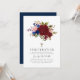Pretty watercolor illustrated flowers, roses and leaves in burgundy, blue and blush pink feature on this modern and elegant invitation. For matching items and custom edits contact Designer LeahG.