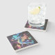 The coasters are gorgeous, a quality feel and heavy weight. They look like a precious archeological find. A rustic stone juxtaposed with a modern floral black and white print. I like the way the print goes slightly imperfect on the cut stone edges giving them a kind-of natural beauty.