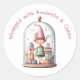 A charming Christmas sticker featuring a tiny elf under a glass dome — perfect for sealing envelopes, decorating gift boxes, or adding a touch of North Pole magic to any holiday package. Text is fully customisable to suit your festive message or family name.