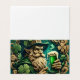 An illustrated leprechaun clad in traditional garb raises a frothy mug of ale amidst a backdrop of lush greenery and clover. With twinkling eyes and a wily grin, he stands as the embodiment of festive folklore, inviting onlookers to a magical celebration of good cheer. The rich, emerald tones and ornate details evoke the spirit of a timeless Irish tradition.