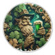An illustrated leprechaun clad in traditional garb raises a frothy mug of ale amidst a backdrop of lush greenery and clover. With twinkling eyes and a wily grin, he stands as the embodiment of festive folklore, inviting onlookers to a magical celebration of good cheer. The rich, emerald tones and ornate details evoke the spirit of a timeless Irish tradition.