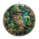 An illustrated leprechaun clad in traditional garb raises a frothy mug of ale amidst a backdrop of lush greenery and clover. With twinkling eyes and a wily grin, he stands as the embodiment of festive folklore, inviting onlookers to a magical celebration of good cheer. The rich, emerald tones and ornate details evoke the spirit of a timeless Irish tradition.